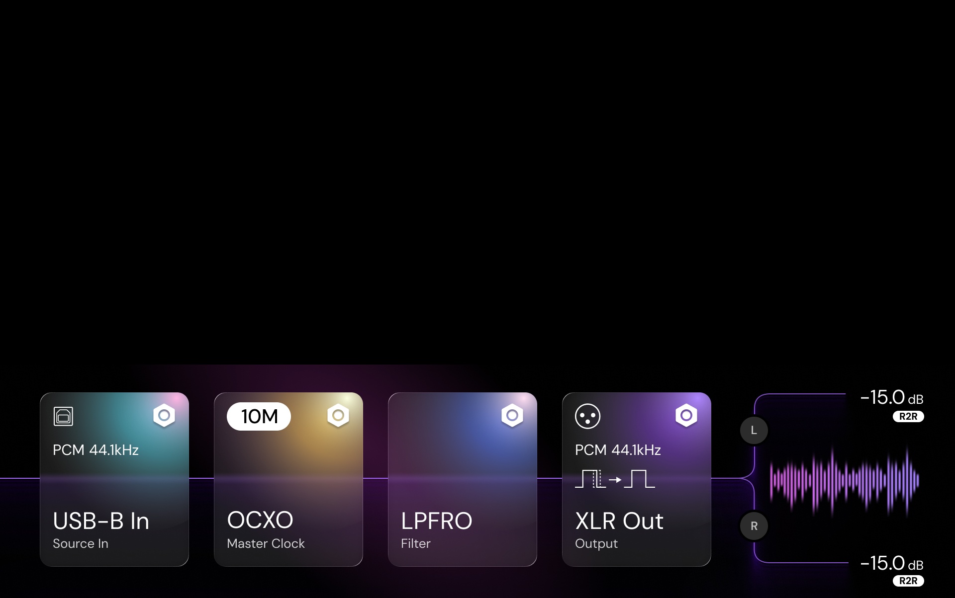 再經過精密配對的R2R 類比音量控制系統,把雜訊與失真降至最低極限,